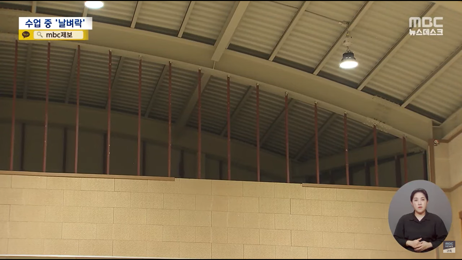 - MBC뉴스데스크 : '초등학교 체육관 천장이 와르르‥교사·학생 14명 부상' (2023.05.12)
